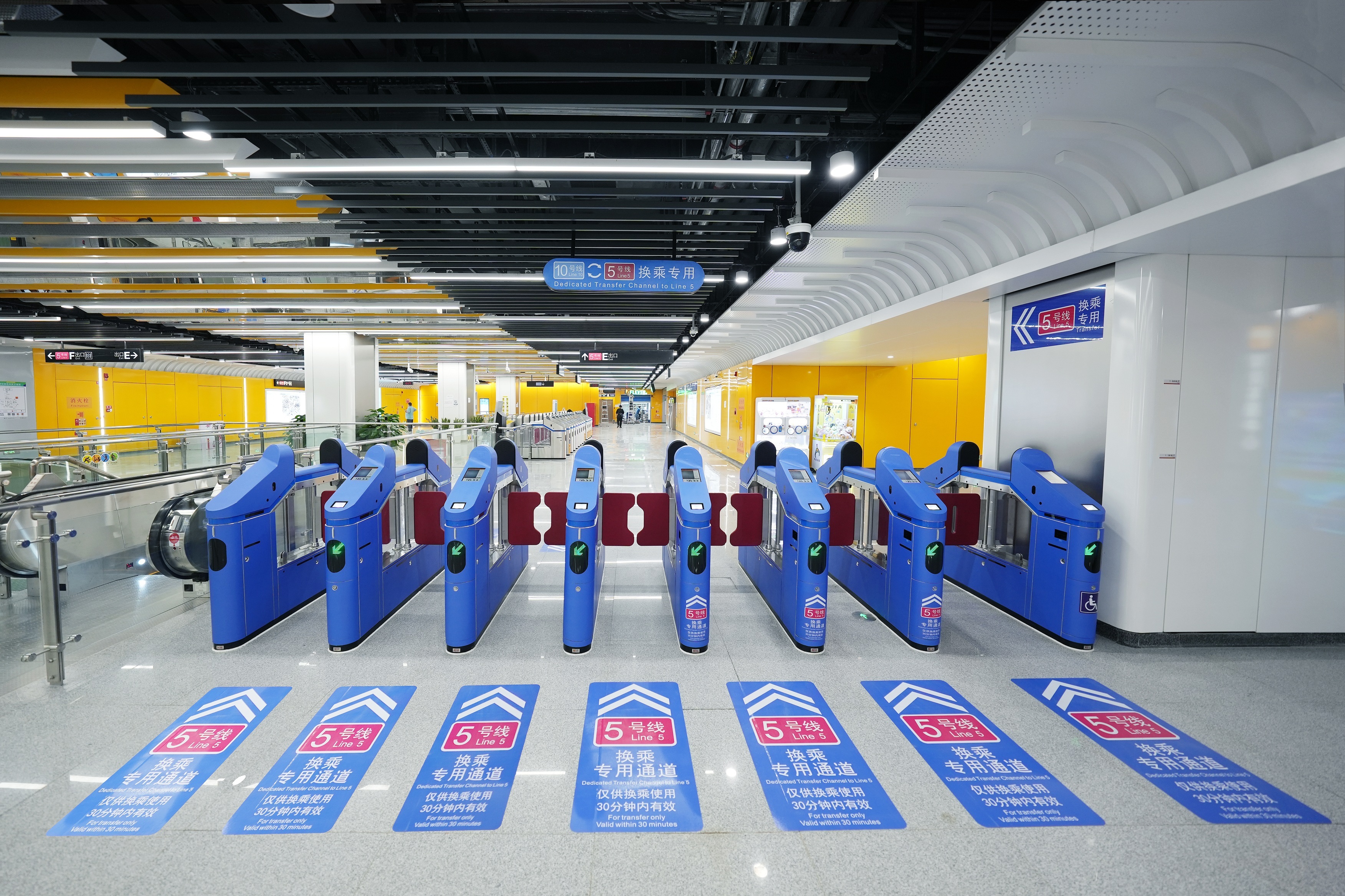 10号线五羊邨站用于站外换乘的蓝色闸机。(林艺壕 摄)