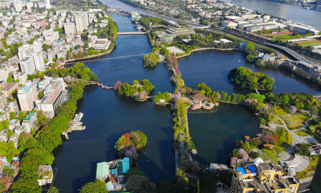 “东湖春晓”曾是羊城八景之一。东山湖公园是广州城心“绿肺”,湖中有4个半岛和2个小岛,分别与湖面的桥相连。环湖可租自行车,有临湖咖啡屋。
